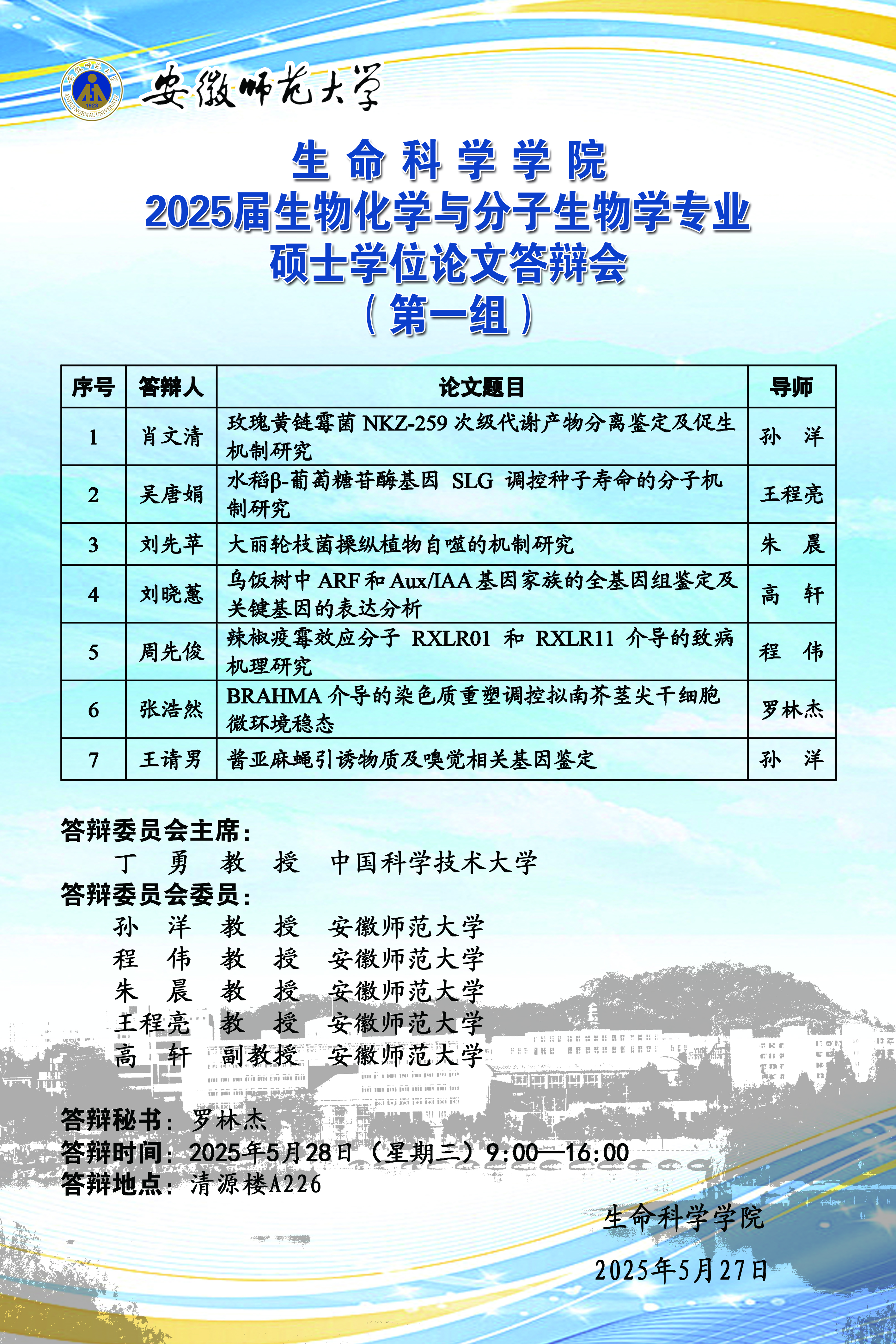 生命科学学院2025届生物学专业硕士学位论文答辩会(生物化学与分子生物学) [2025-05-27]